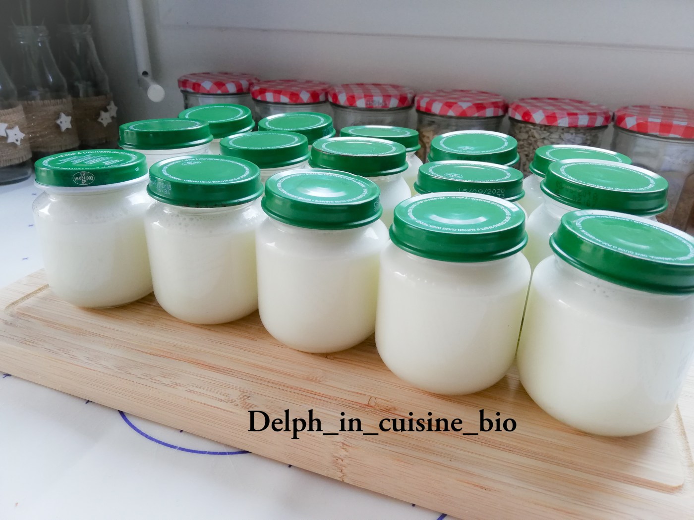 - Verser dans les pots et mettre au four pot fermé pendant 4 heures à 45°C.