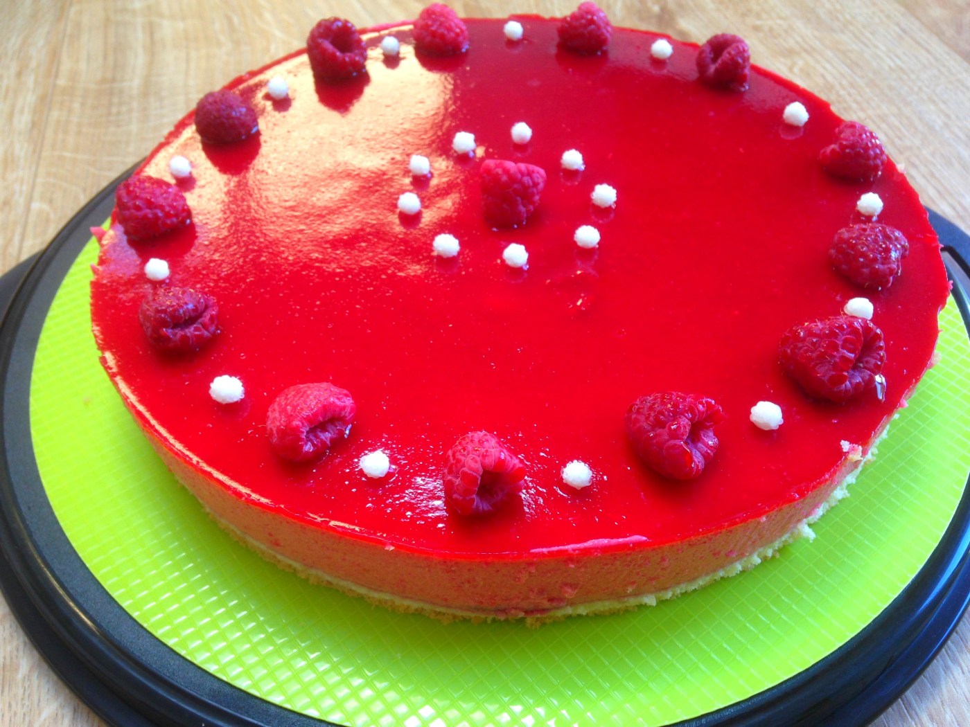- Verser sur la mousse de framboises de façon régulière et bien lisser.