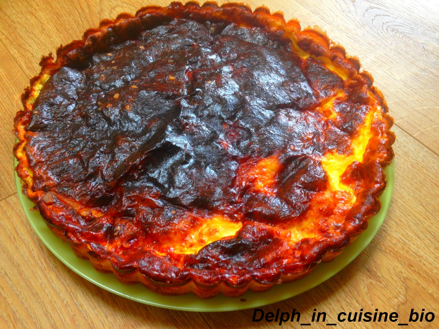 - Repartir les dés de jambon sur le fond d’un moule à tarte.