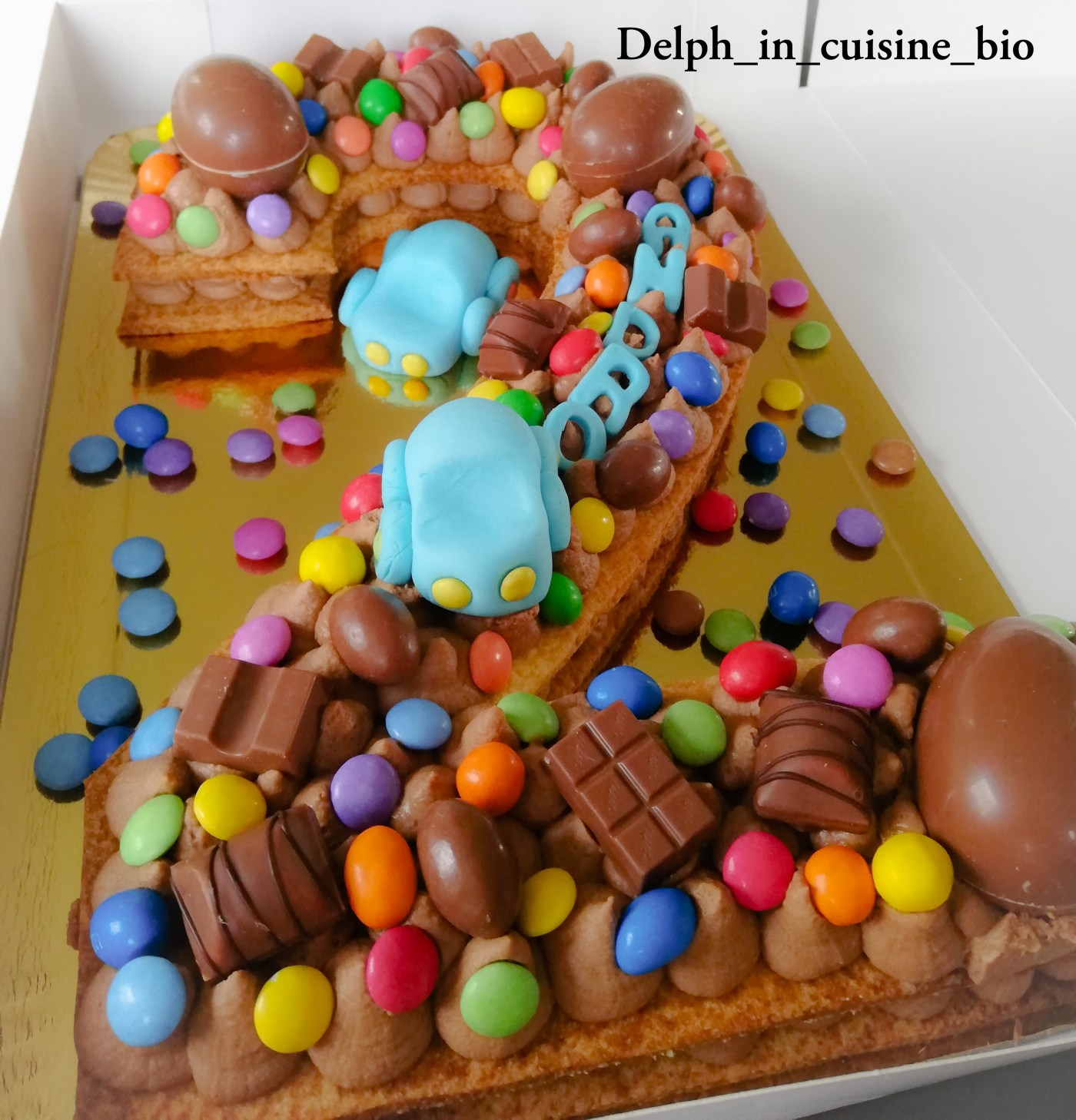 En ce mercredi, je vous propose la recette d’un gâteau que j’ai fait pour les 2 ans d’Andro! Un number cake hyper gourmand, garni d’une ganache montée au chocolat au lait et décoré de Kinder, Smarties et M&M’S!