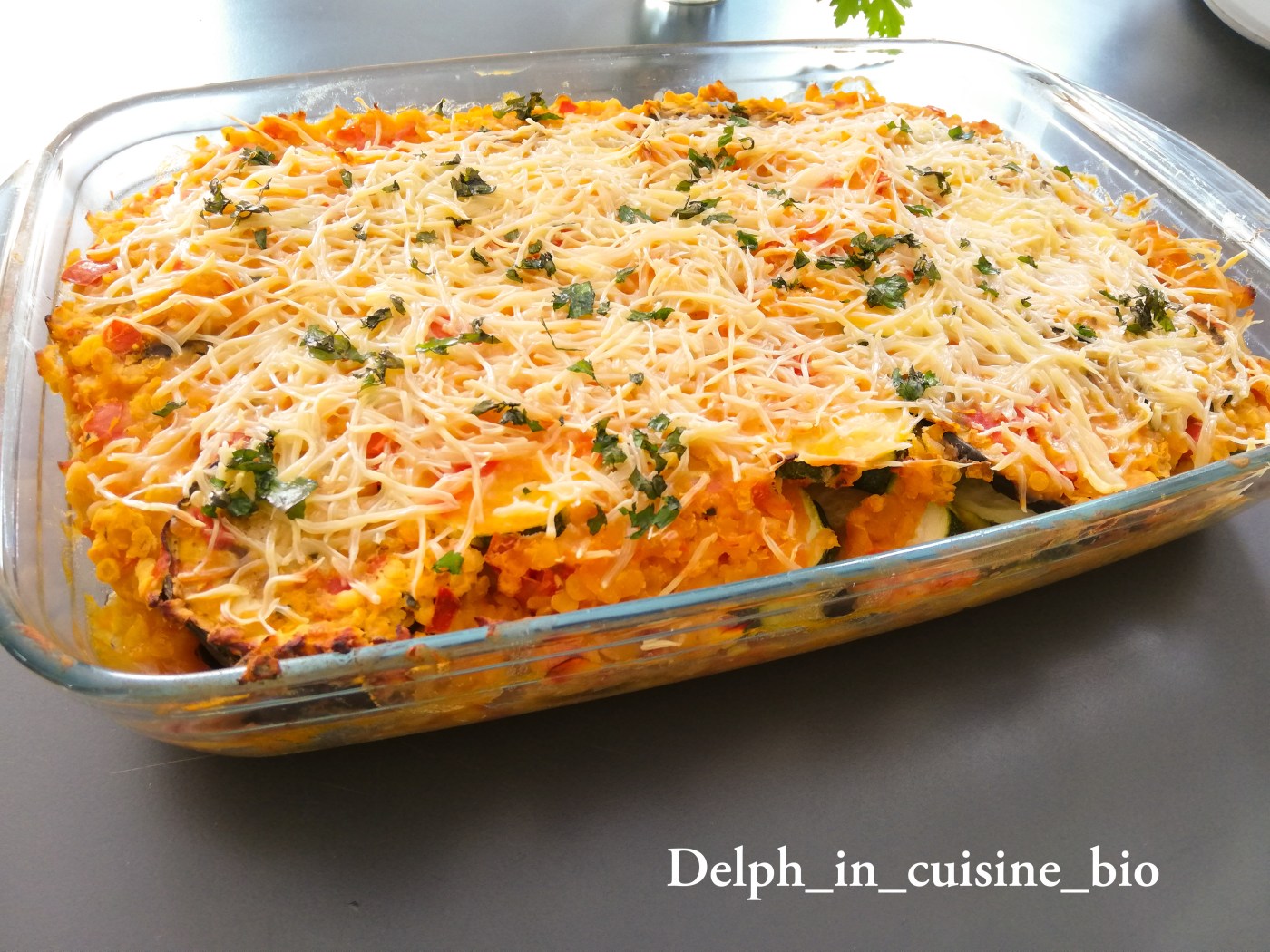 J’ai découvert il y a quelques temps les lentilles corail et voilà une recette que je voulais vous faire partager. Il s’agit d’un gratin végétarien, à base de lentilles corail, d’aubergine, de courgettes et de tomates.