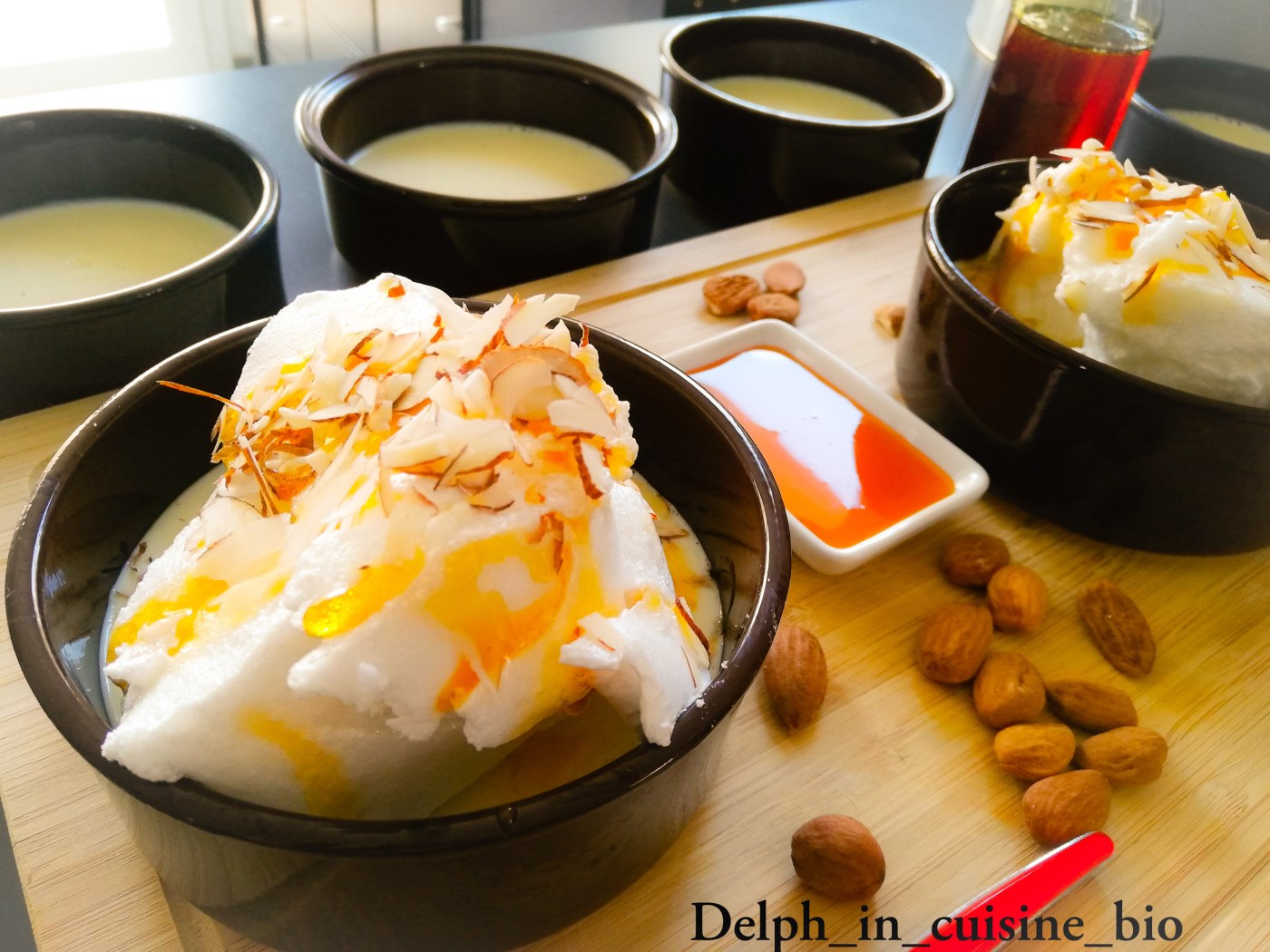 - Au moment de servir, décorer chaque île flottante d’un filet de caramel.