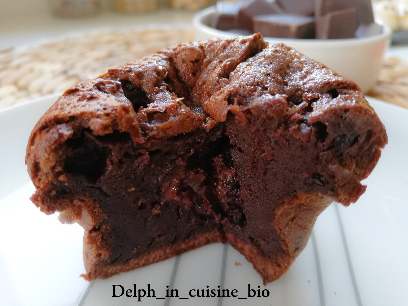 - Répartir ⅓ de la pâte dans des ramequins, déposer 2 carrés de chocolat au centre de chacun des ramequins, puis couvrir avec le reste de pâte.