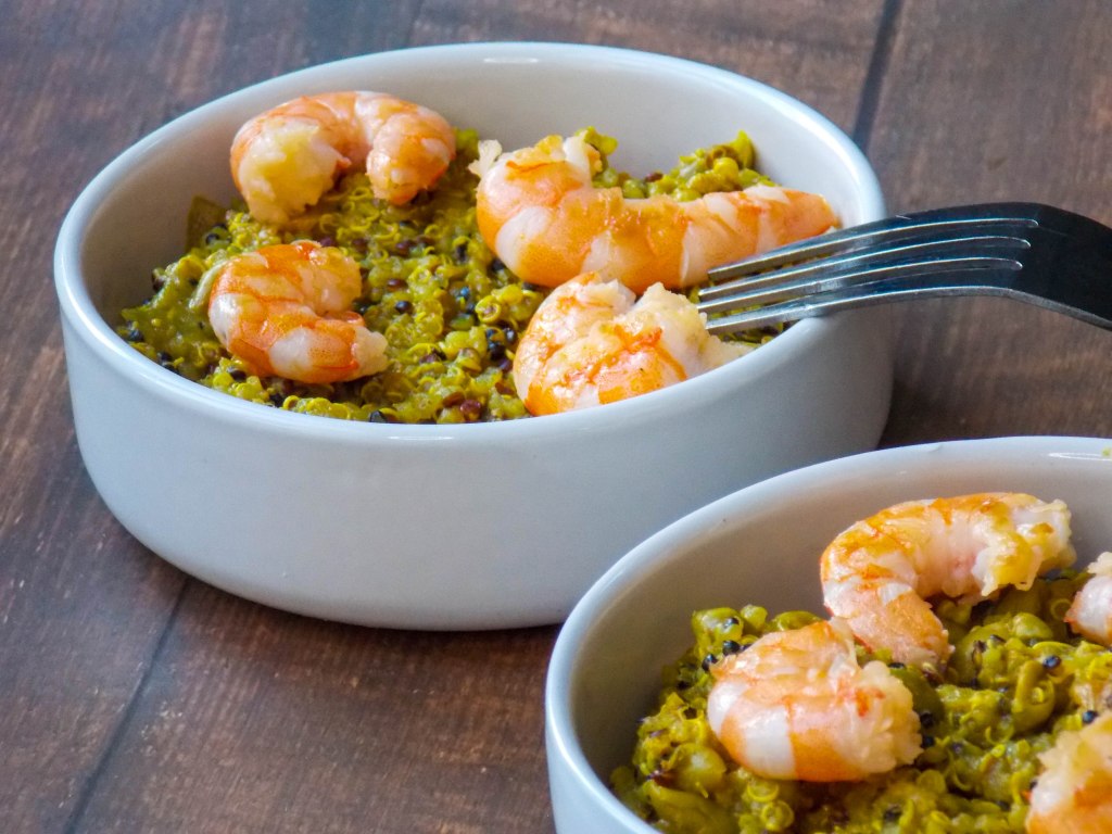 J’adore les crevettes! Et vous? Vous allez les adorer avec cette recette de quinoa aux crevettes, à base de curry, de lait de coco, de petits pois et de carottes. Savoureuse, facile à faire au Cookeo, rapide, complète, je vous invite à la tester, car c’est devenu une de mes recettes favorite. Bien sûr, vous pouvez la réaliser sans Cookéo, en suivant les étapes une à une, en cuisant plutôt 20 minutes sur l’étape 6.