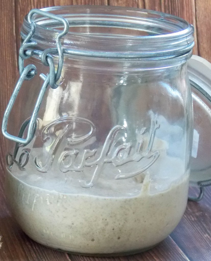 Tout est dit! Maintenant, vous n’avez plus qu’a tester! Pour faire un levain liquide, il faut juste de l’eau idéalement de source ou filtrée, de la farine, idéalement blé T80 jusqu’à T150, ça marche aussi avec de la T65 mais plus long à démarrer et quelques jours devant soir avant de pouvoir l’utiliser. Et pour le début, je préfère le seigle qui le rend plus acide mais le fait démarré très vite et le rend quasi inratable.