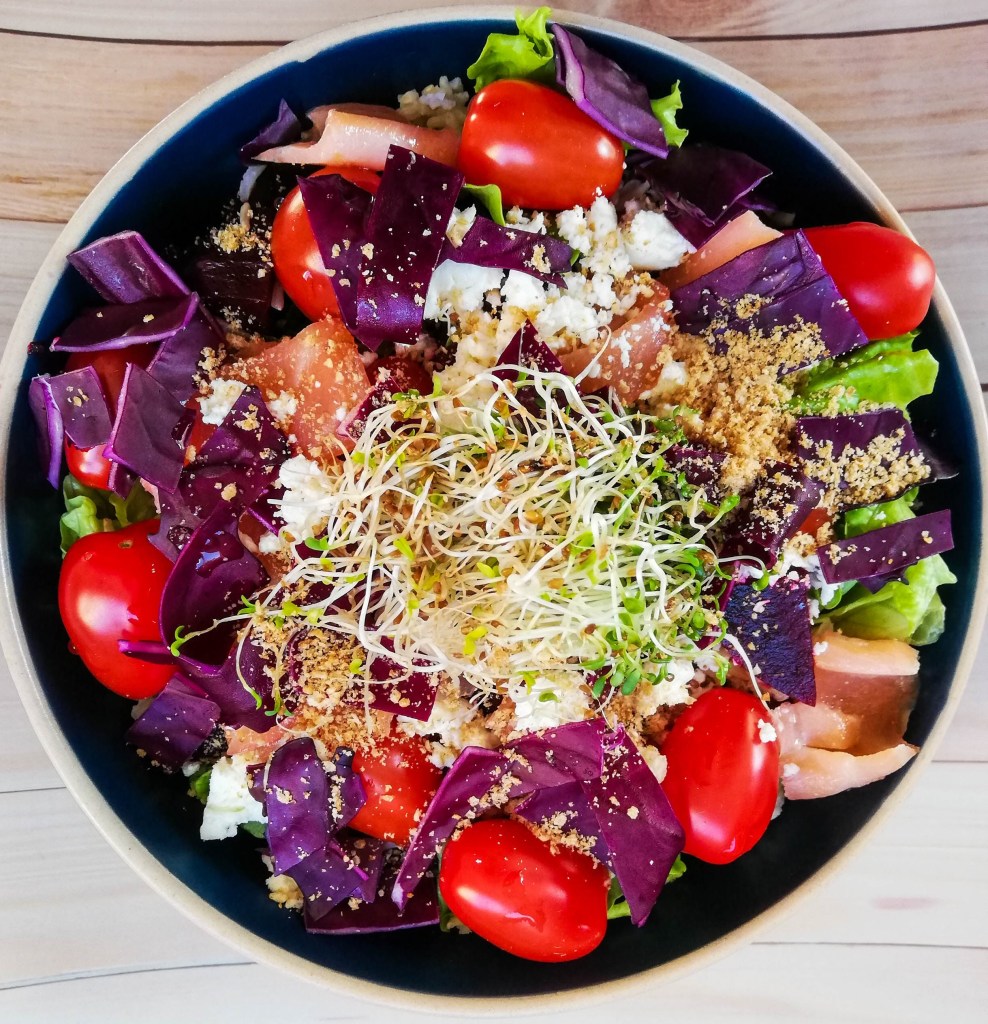 Comme vous le savez, ou si vous ne le savez pas, vous devez vous en douter, j’adore manger des salades composées. C’est facile, rapide, vous mettez ce que vous avez envie dedans et cela permet de vider le frigo, sans avoir à jeter car chez moi, on ne jette rien!
