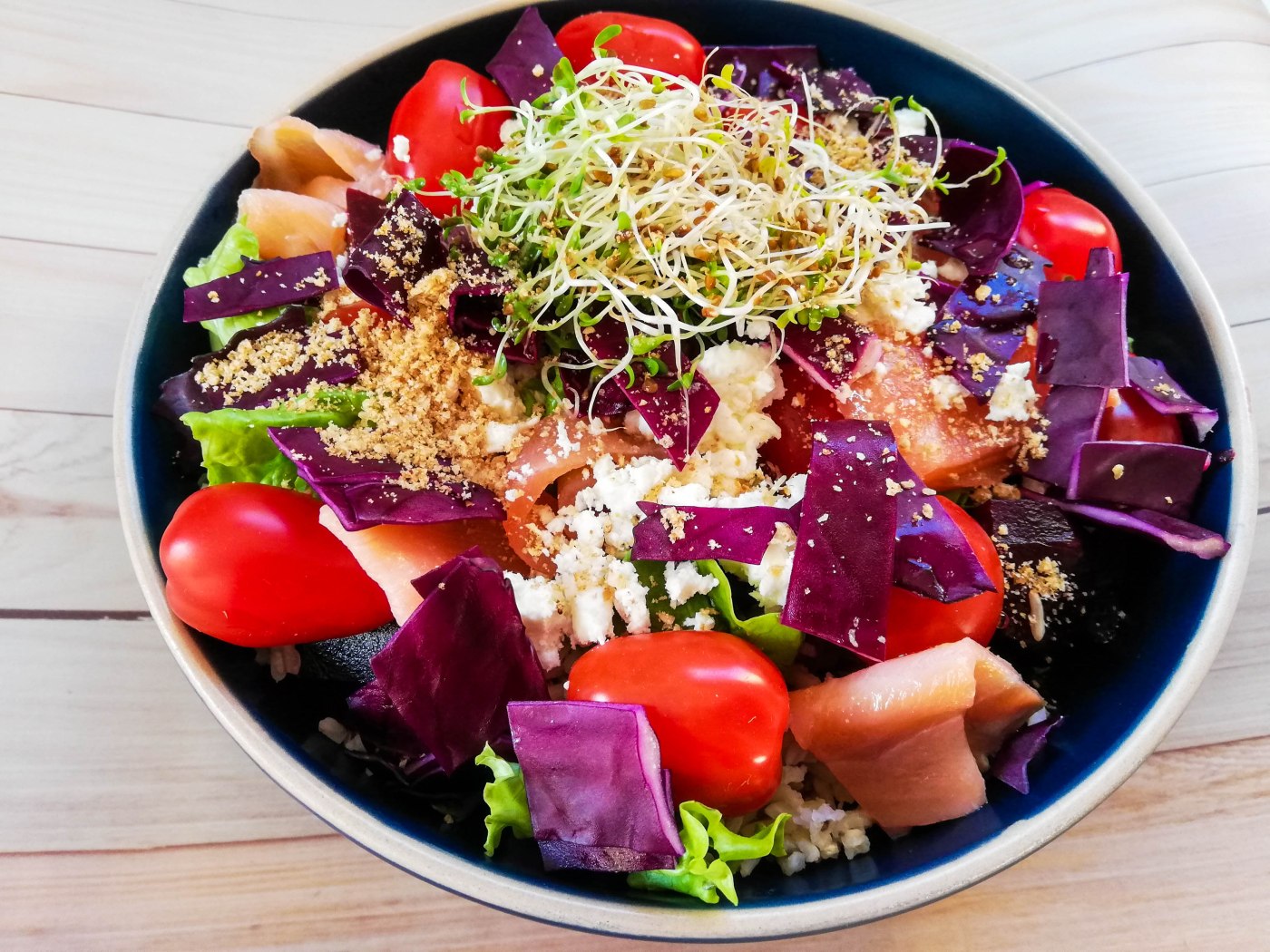 Je vous propose là une recette que je fais très souvent à base de chou rouge et de saumon fumé.