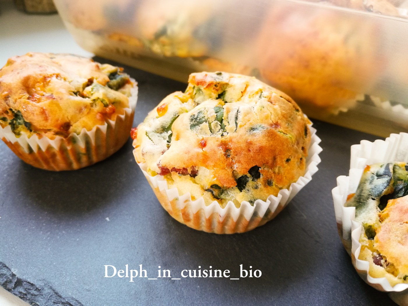 - Enfourner pour 25 à 30 min à 180°C, jusqu’à ce que le dessus soit gonflé et doré.