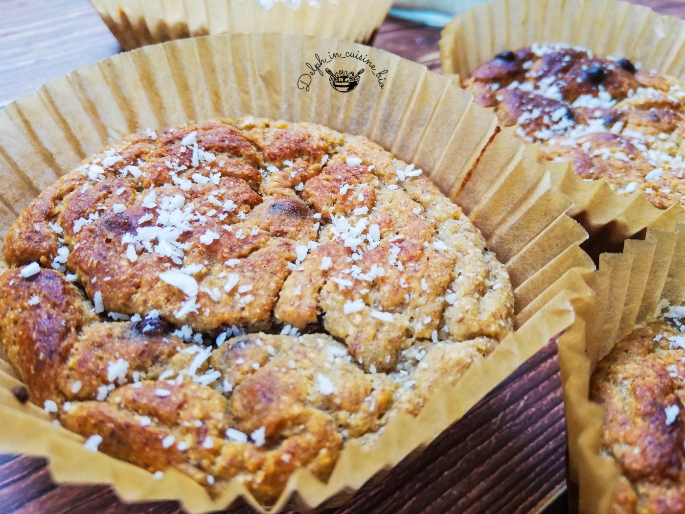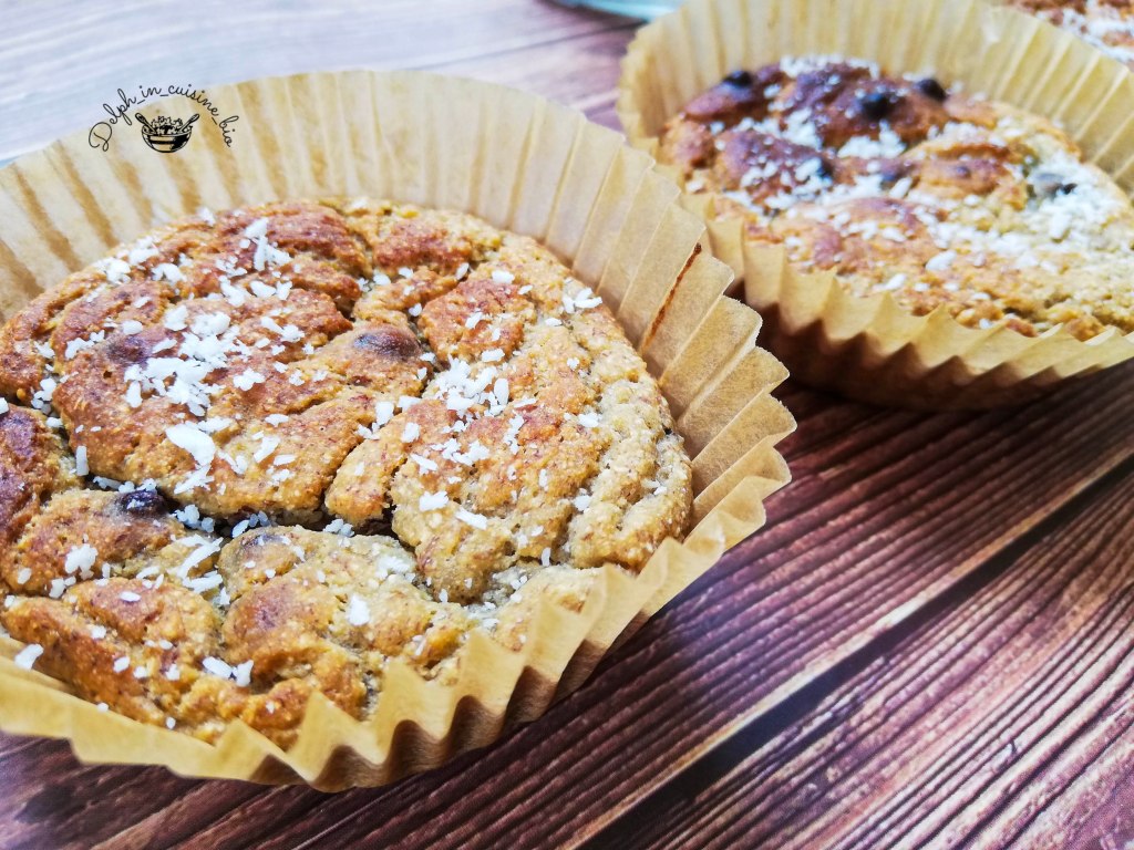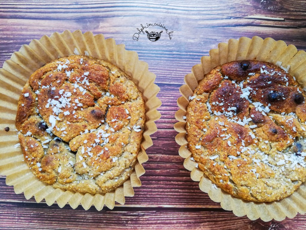 Idéal pour le matin, ou si vous jeûnez comme moi, pour une collation saine, voici ma recette de muffins à la noix de coco et aux pépites de chocolat.