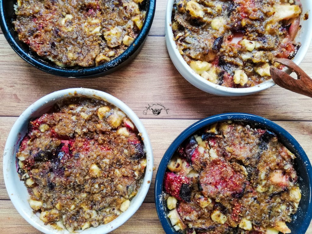 Une idée de dessert sympa et de saison : le crumble aux pommes et figues! La saison des figues est tellement courte. Elle se consomme de juillet à octobre. Elle est riche en fibres et en minéraux (calcium, potassium, fer). Elle contient un enzyme, la ficine qui favorise la digestion et l’équilibre intestinal.