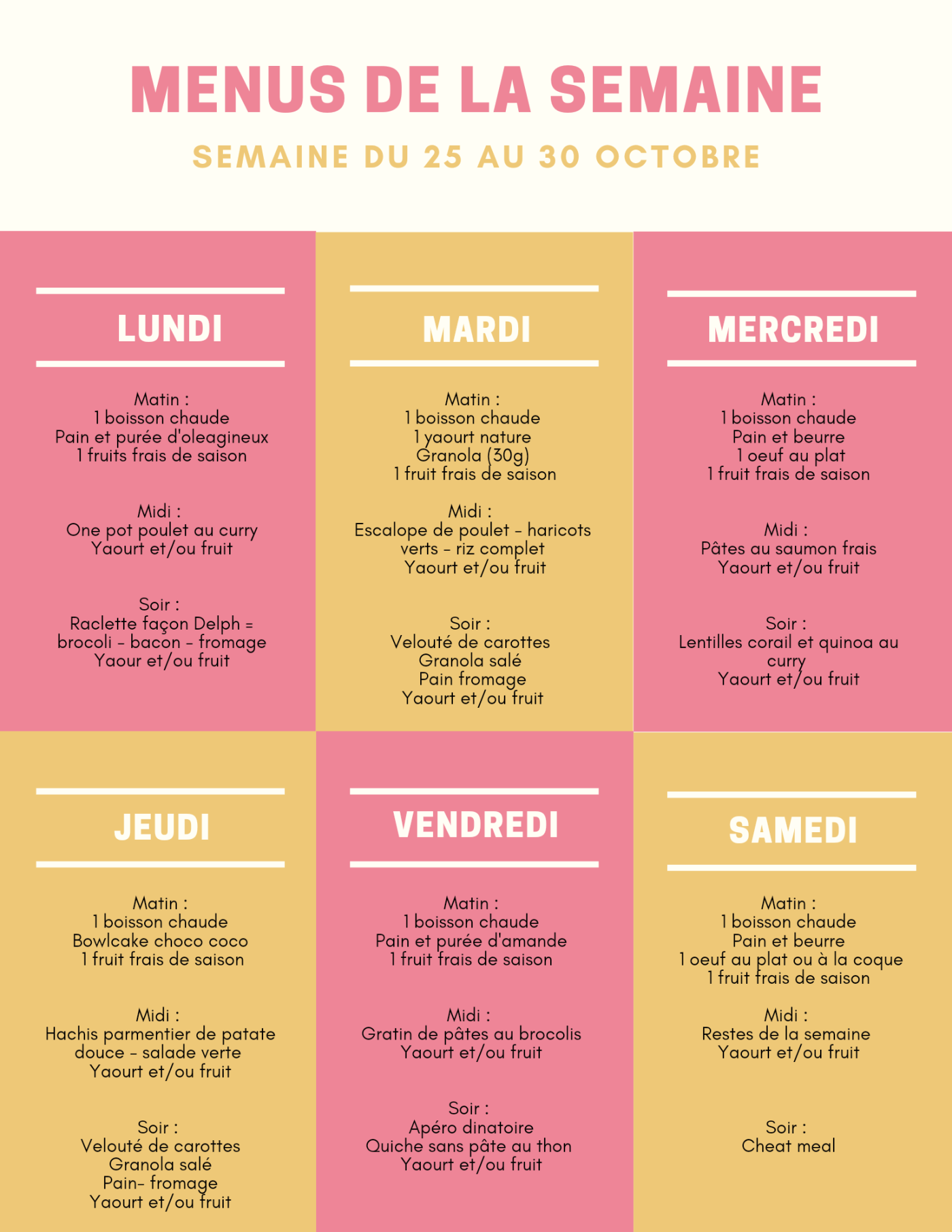 Menu semaine du 25 au 30 octobre