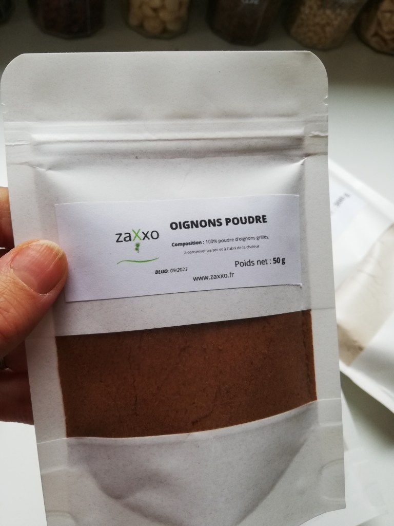- 1 cuillère à café d’oignon en poudre Zaxxo https://www.zaxxo.fr/511-2/oignons-poudre/ Rappel -10% sur TOUT le site avec mon code promo DELPH_IN