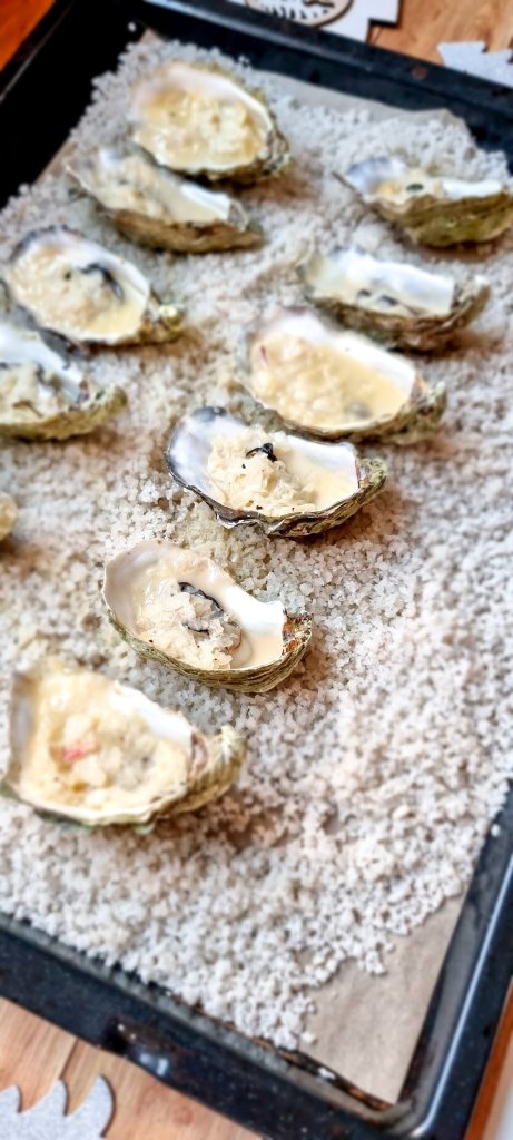 - Réserver les huîtres ouvertes dans un plat à four dans lequel vous aurez préalablement versé du gros sel.