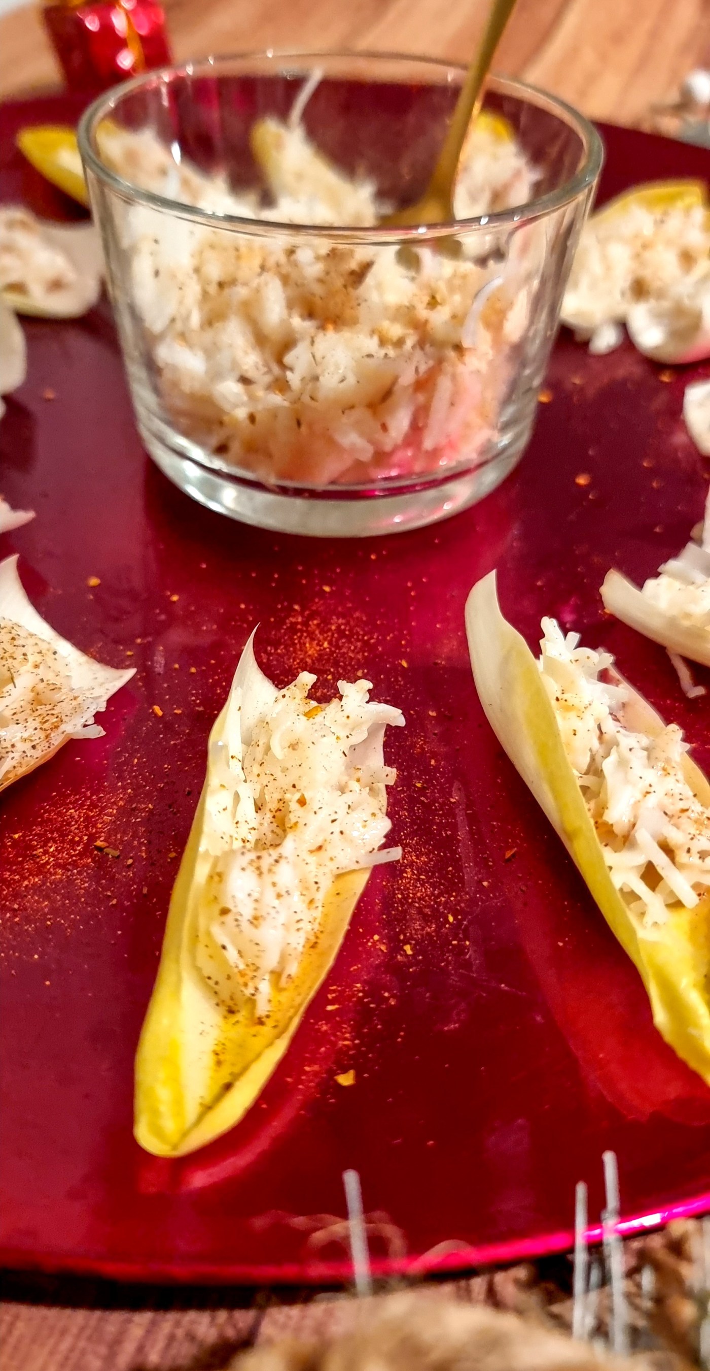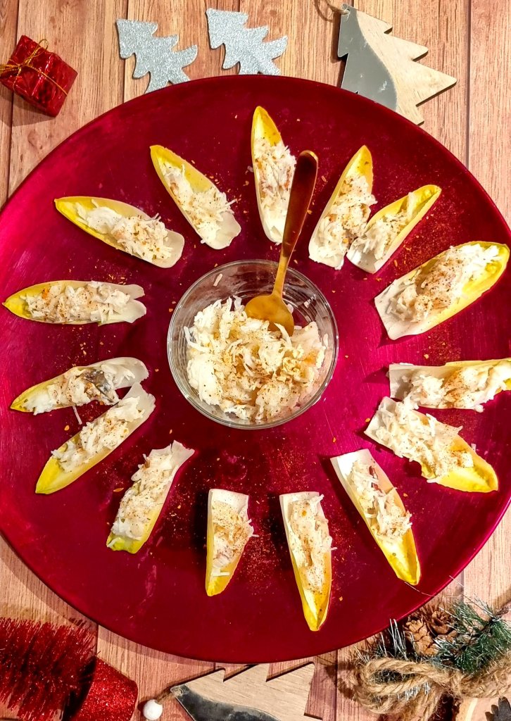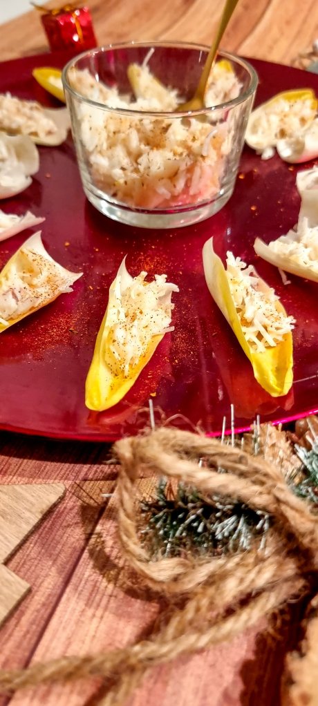 Et voilà de retour une nouvelle idée, toujours rapide et sympa à réaliser pour vos fêtes! Toute simple, il vous suffit juste de trouver quelques endives, un peu de crabe, une lichette de crème et un soupçon d’épices! Vos invités seront bluffé par cette recette légère et gourmande!