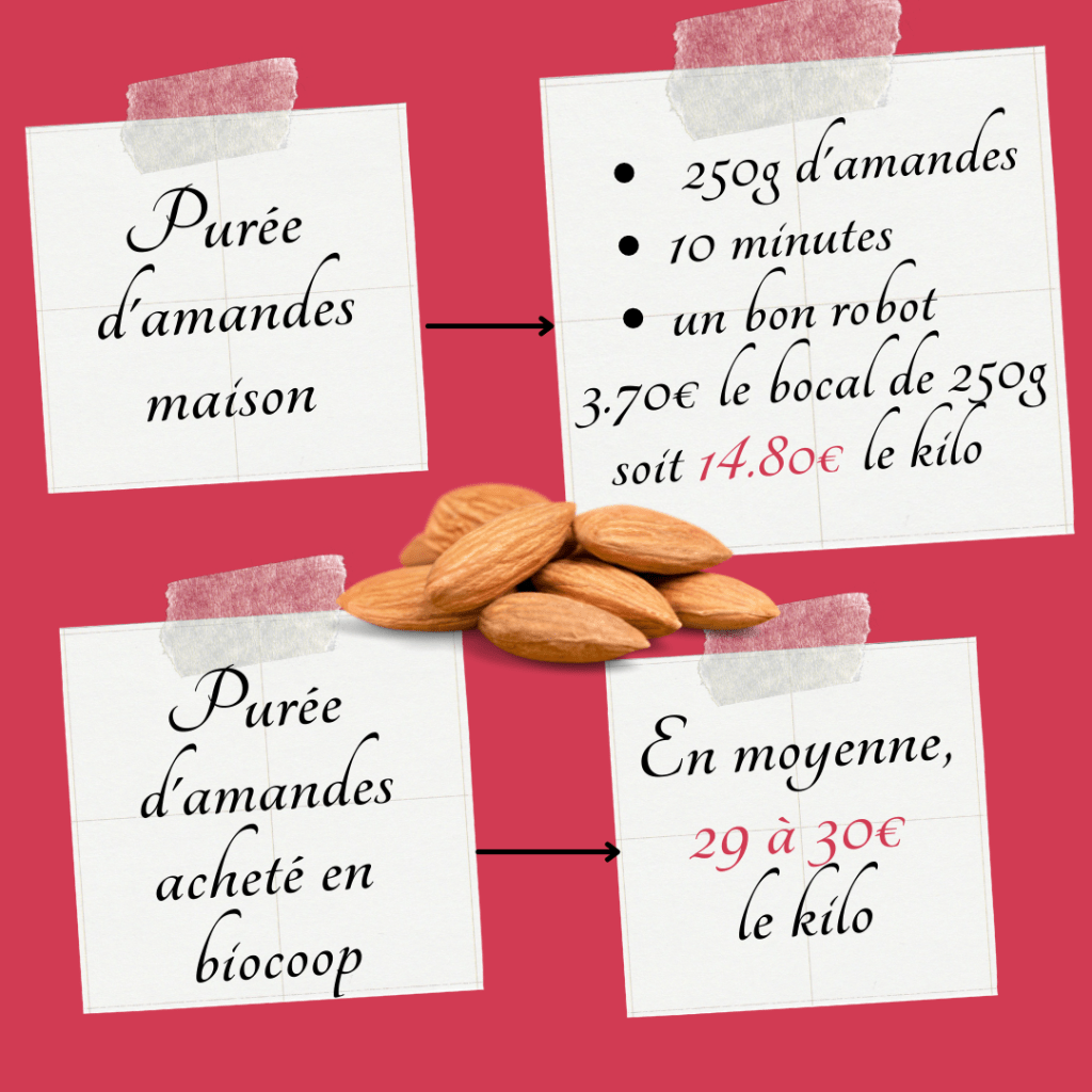 - Pour une raison budgétaire. Vous avez vu les prix des purées d’oléagineux en magasin? Il y a de quoi sauter au plafond. En moyenne, 29 à 30€ le kilo contre 14.80€ le kilo à le faire soi-même.