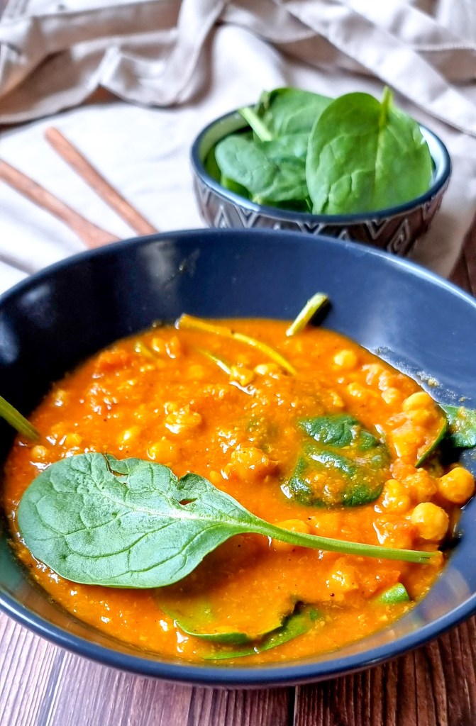 Ahlalalalalalalala!! En voilà une superbe recette, sans gluten, sans lactose, végétarienne pour ceux et celles qui le sont, parfumés, doux, équilibré et surtout simple et rapide à réaliser. Mon mari et mes enfants ne sont pas fan des pois chiches mais ils ont adoré ce repas réconfortant!