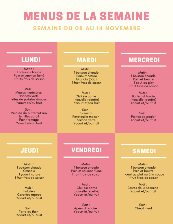 Lien vers les recettes existantes : Idées de petits déjeuner Repas Quinoa aux légumes verts et dinde Aubergines au four façon pizza Gratin de courgettes et saumon Tarte au thon et tomates Fajitas de poulet Quiche brocoli et saumon (version végétarienne possible et changement de légumes selon ce que vous avez dans votre frigo) Chakchouka courgettes et tomates... Lire la Suite →