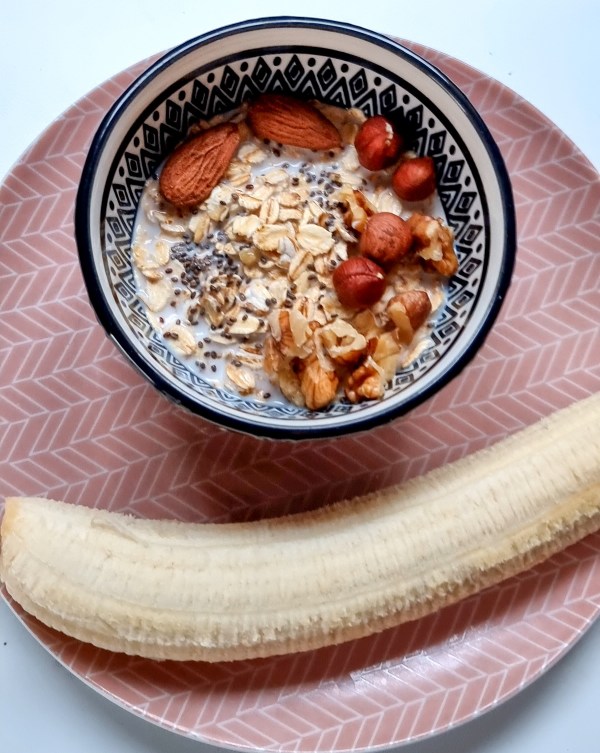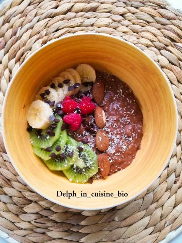 A préparer la veille au soir 😉 pour un super petit-déjeuner! Ingrédients : 30g de flocons d'avoine 250cl de lait d'amande1 cuillère à café de cacao en poudre non sucré1 cuillère à café de miel ou de sirop d'agaveTopping : ici amandes, pépites de chocolat, noix de coco, banane, kiwi, framboises Etapes : Dans un... Lire la Suite →