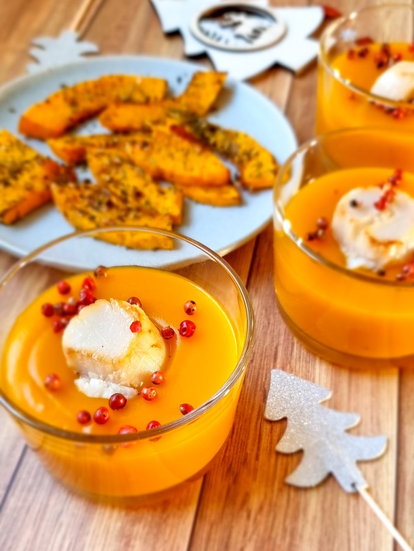 Une nouvelle idée de recette de Noël sympa et toute simple à réaliser, soit à l'apéro, soit en entrée : un velouté de butternut, noix de St Jacques et baies de roses!! Ingrédients pour 6 parts : 1 oignon10g d’huile d’olive600g de butternut500g d’eau1 cube de bouillon de volaille1/2 cuillère à café de sel1 pincée... Lire la Suite →
