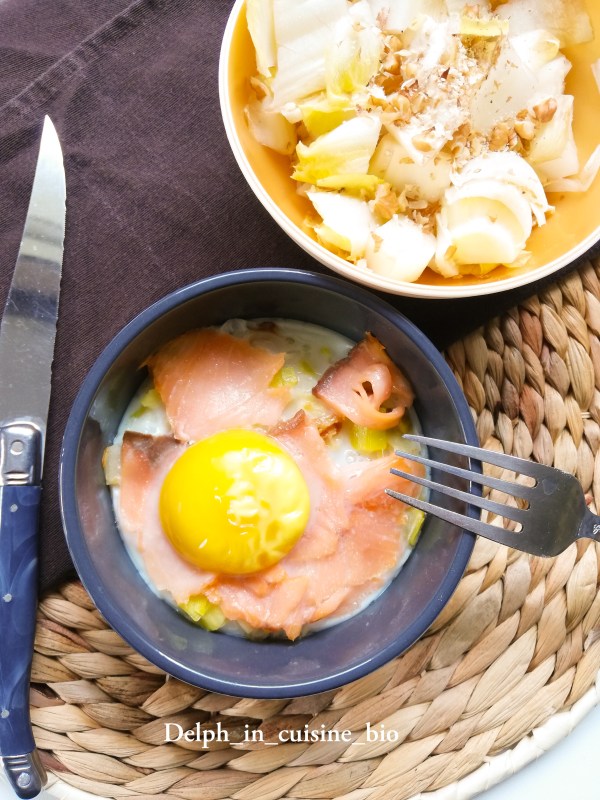 Ingrédients pour 4 œufs cocotte , 5SP💚, 1SP💙💜: 1 oignon10g d'huile d'olive4 œufs4 gros poireaux4 tranches de saumon fumé30g de crème fraîche 4%selpoivrepaprika Etapes : Préchauffer le four à 180°C.Mettre l'oignon dans le bol. Mixer 5 sec/vitesse 5. Racler les parois du bol avec la spatule.Ajouter 10g d'huile d'olive et les poireaux, préalablement lavés et... Lire la Suite →